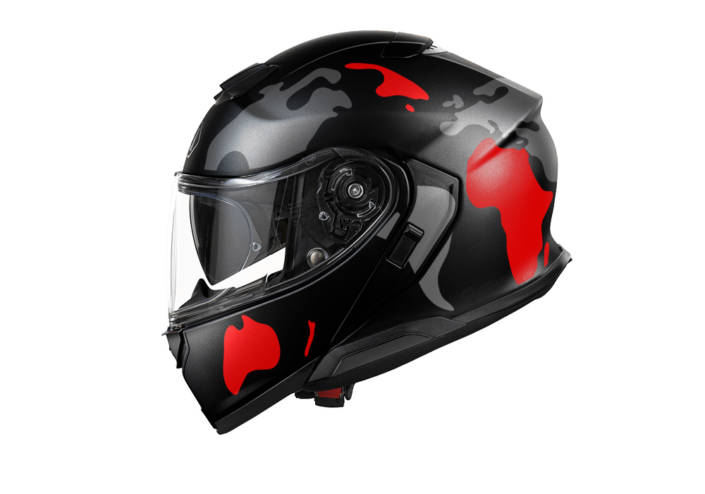 Signature Custom Designs THE GLOBE Series styling kit, gives to your Shoei Neotec 3 Helmet a unique and adventure character. Gloss finishing stickers on matte helmet creates the perfect contrasting touch!