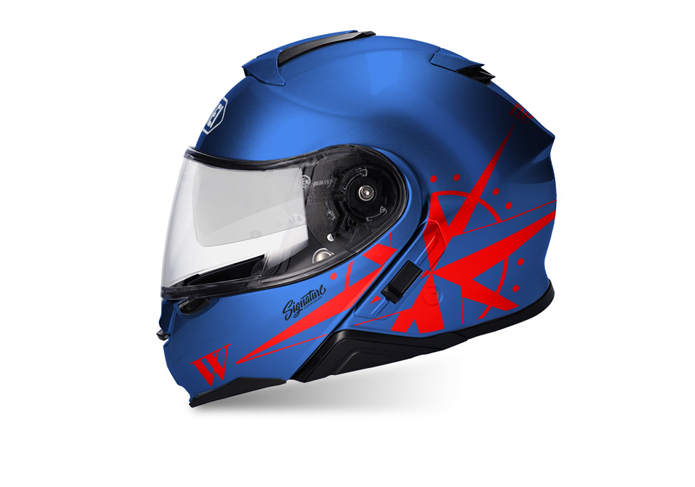 Signature Custom Designs COMPASS Series styling kit, gives to your Shoei Neotec II Helmet a unique and adventure character. Gloss finishing stickers on matte helmet creates the perfect contrasting touch!
