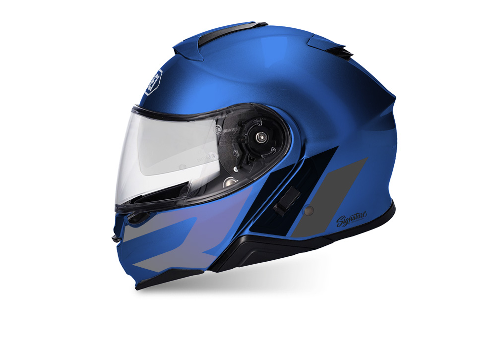 Signature Custom Designs R-LINE Series styling kit, gives to your Shoei Neotec II Helmet a unique and sport character. Gloss finishing stickers on matte helmet creates the perfect contrasting touch!