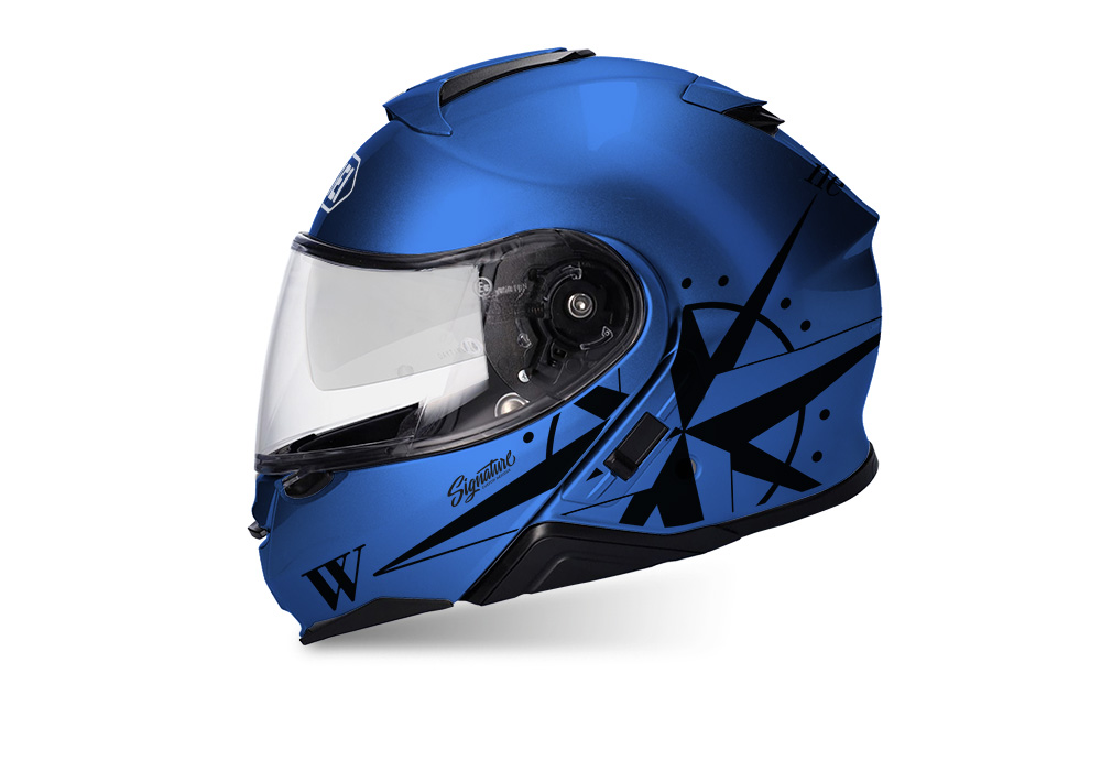 Signature Custom Designs COMPASS Series styling kit, gives to your Shoei Neotec II Helmet a unique and adventure character. Gloss finishing stickers on matte helmet creates the perfect contrasting touch!