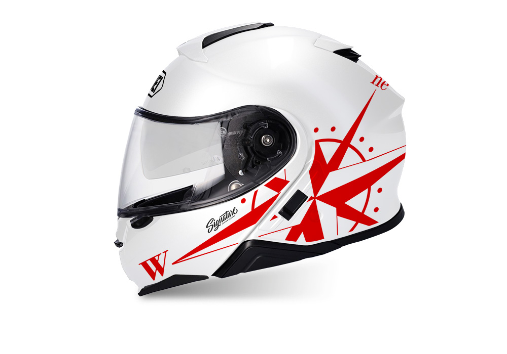 Signature Custom Designs COMPASS Series styling kit, gives to your Shoei Neotec II Helmet a unique and adventure character. Gloss finishing stickers on matte helmet creates the perfect contrasting touch!