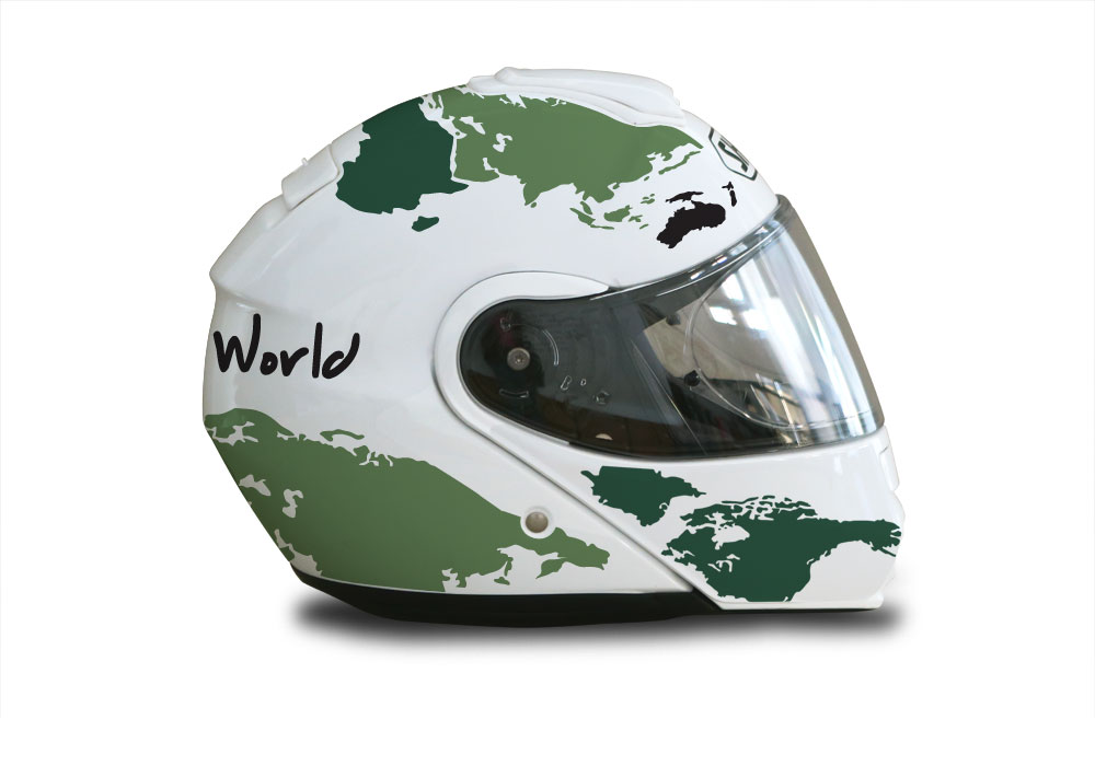 Signature Custom Designs THE GLOBE Series styling kit, gives to your Shoei Neotec Helmet a unique and adventure character.