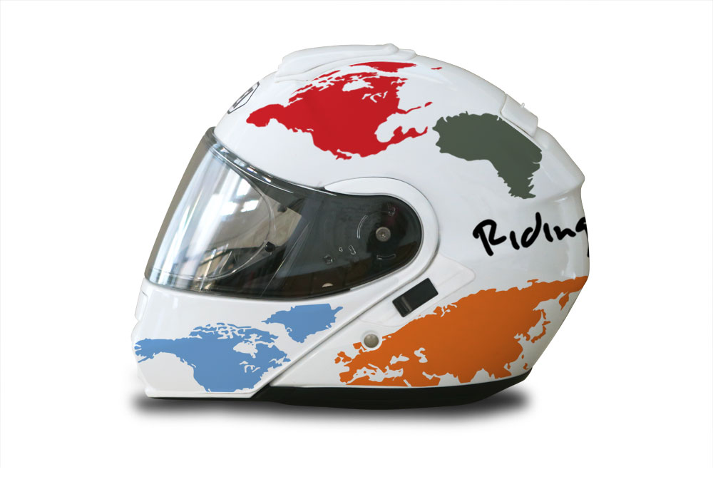Signature Custom Designs THE GLOBE Series styling kit, gives to your Shoei Neotec Helmet a unique and adventure character.