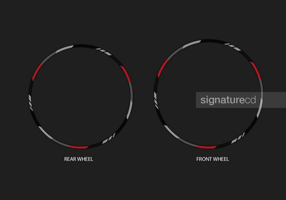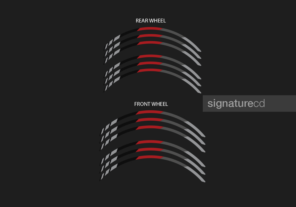 Produced using high-resolution digital printing on premium high-tack vinyl, these stripes are built to stay in place even under demanding riding conditions.A protective lamination finishing layer adds extra durability against UV exposure, washing, road debris and everyday wear.Whether paired with a full Signature styling kit or installed on their own, these rim accents create a sharper, more aggressive and premium look in minutes.