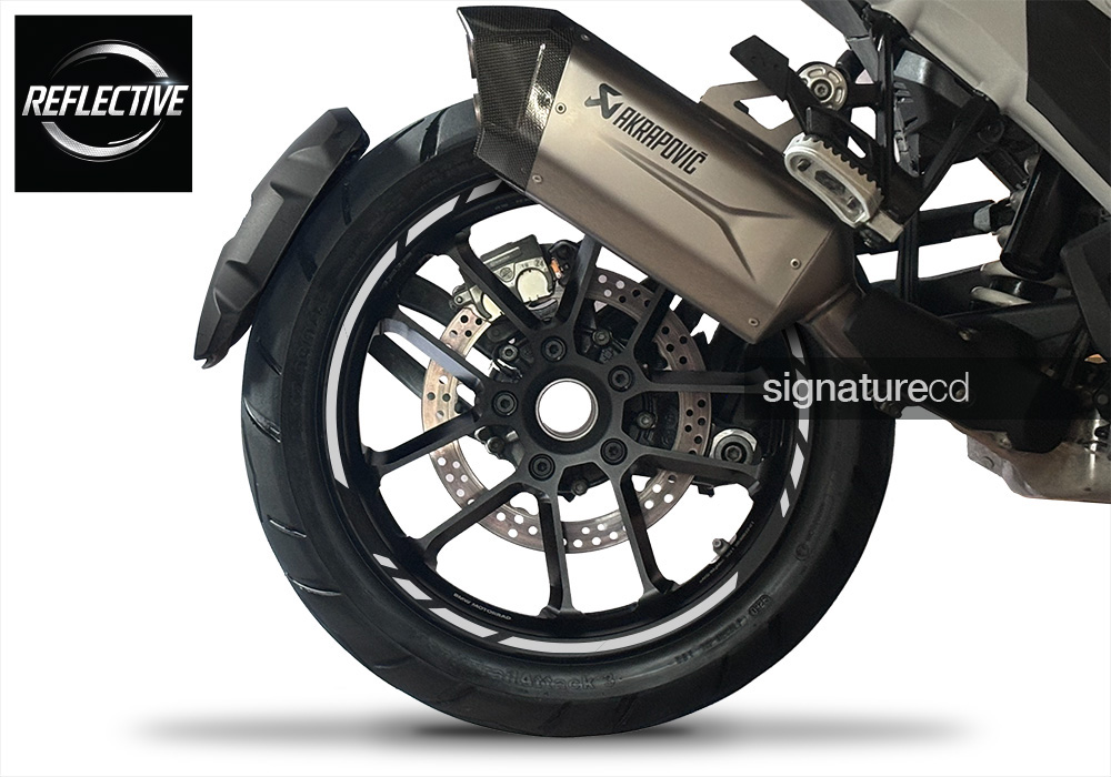 The Signature Reflective Wheel Stickers are designed to elevate your BMW motorcycle with clean, precision styling that follows the natural lines of the rim while adding a functional safety upgrade through premium reflective material.