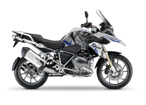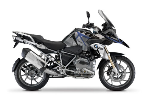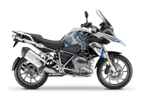 BMW Black Aluminum Side Panniers Spike Grey & Blue Stickers