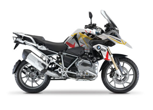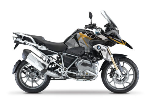 BMW Black Aluminum Side Panniers Spike Grey & Yellow Stickers