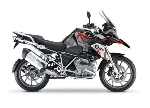 BMW Black Aluminum Side Panniers Spike Grey & Red Stickers