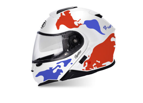 Schuberth E2 Helmet (White) The Globe Series Red & Blue Stickers