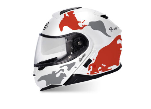 Schuberth E2 Helmet (White) The Globe Series Grey & Red Stickers