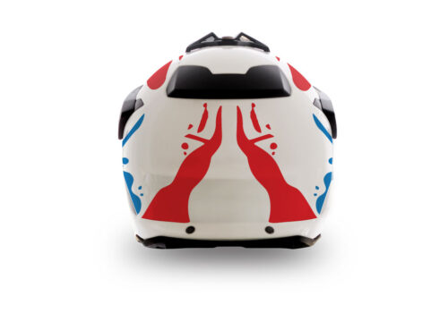 BMW GS Enduro Helmet (White) Safari Series Red & Blue Stickers Kit