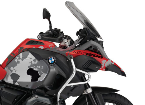 BMW Aluminum Side Panniers Spike Blue & Red Stickers Kit