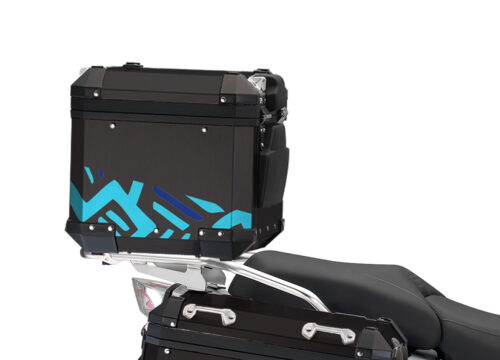 BMW Black Aluminum Side Panniers Four Elements Blue Variations Stickers
