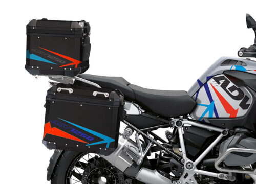 BMW Black Aluminum Top Box Spike Blue & Red Stickers