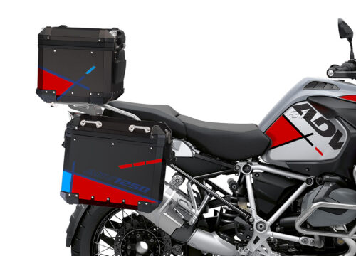 BMW Black Aluminum Top Box Spike Blue & Red Stickers