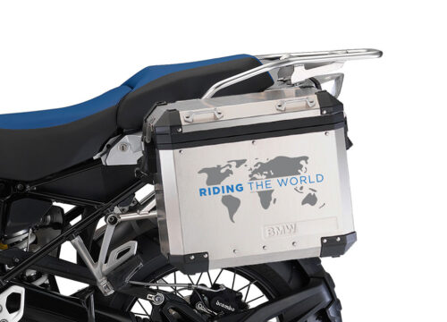 BMW Aluminum Side Panniers The Globe Grey & Blue Stickers