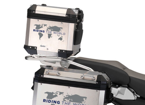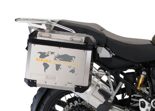 BMW Aluminum Side Panniers The Globe Grey & Black Stickers