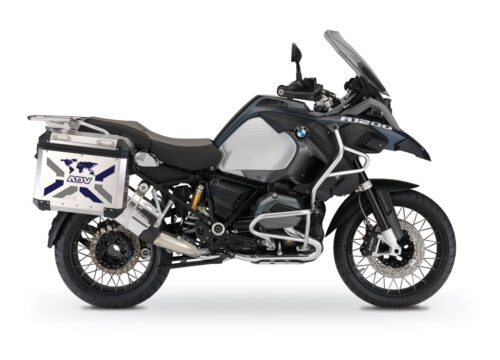 BMW Aluminum Side Panniers The Globe X-Type Dark Blue & Grey Stickers Kit